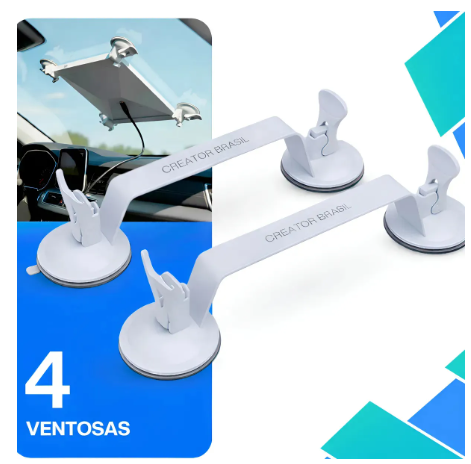 O diferencial aqui está nas 4 ventosas reforçadas com trava mecânica — não é aquela ventosa comum que solta na primeira trepidação.